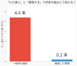 → 5年間で、平均4.4本のむし歯が新たに発生