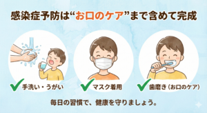 手洗い・うがい・マスクといった対策はすっかり定着しましたが、「歯磨き」や「定期的な歯科メインテナンス」がインフルエンザ予防につながることをご存じでしょうか。