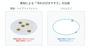 銀歯やハイブリッドレジンは安価ですが、表面に細かな傷がつきやすく、菌が多く付着します。
